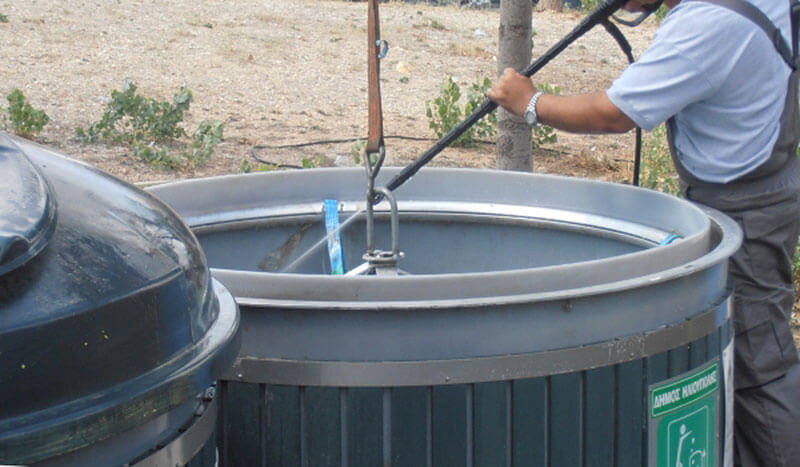 Η επιχείρηση καθαριότητας των υπόγειων κάδων εκτός από την αισθητική της πλευρά αποτελεί και ένα ακόμη μέτρο υγειονομικής θωράκισης των δημόσιων χώρων.