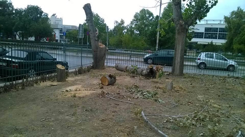 • Τα δέντρα που κόπηκαν ήταν στην πλειοψηφία τους γερά δέντρα (μπορείτε να δείτε φωτογραφίες των κομμένων κορμών ΕΔΩ) και μάλιστα λεύκες, που είναι κατ' εξοχήν υδρόφιλα και κατάλληλα να απορροφούν νερό. Επιπλέον, τα φροντίζεις όταν αρρωστήσουν, τα υποστυλώνεις όταν γέρνουν, τα συντηρείς και δεν τα καταστρέφεις. Μπορείς να σώσεις αρκετά δέντρα, αν το θελήσεις. Δεν πετάς στον Καιάδα τους ασθενείς και ηλικιωμένους...